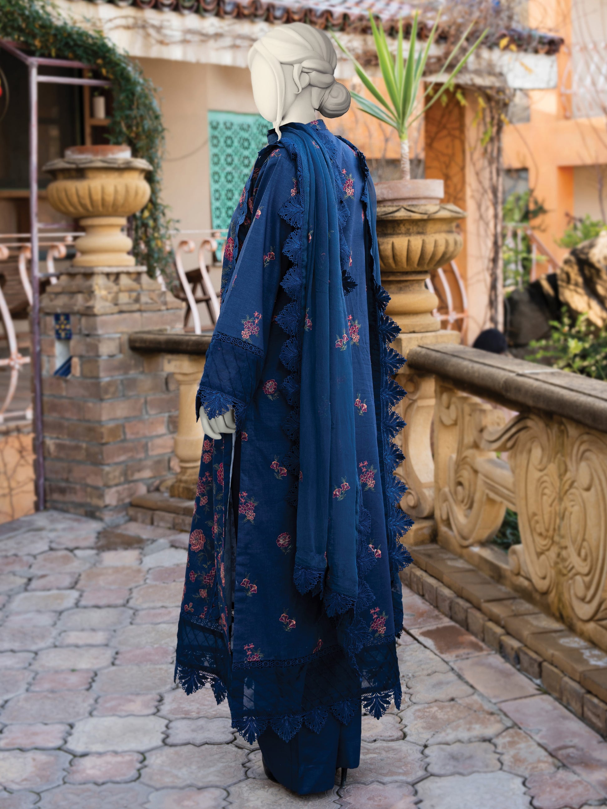 Back - Embroidered Lawn- 1.25 - Meter