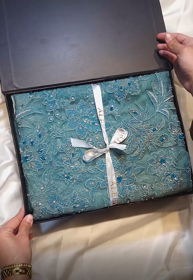 Dupatta: 2.50 meters – Embroidered net with Elegant hand-crafted embellishments